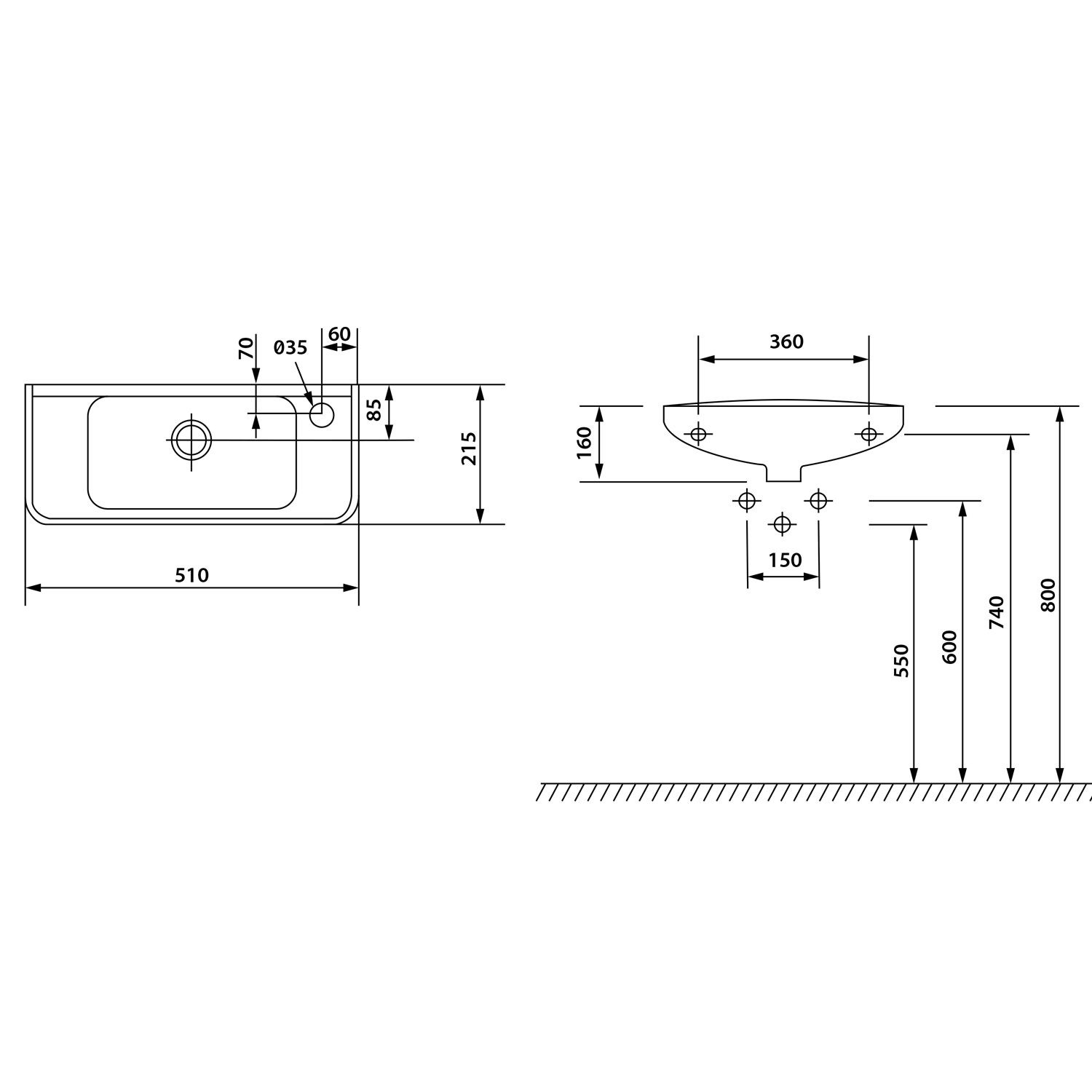 AL565 SMALL ALABAMA öntöttmárvány mosdó, jobbos, 36x11x23cm,