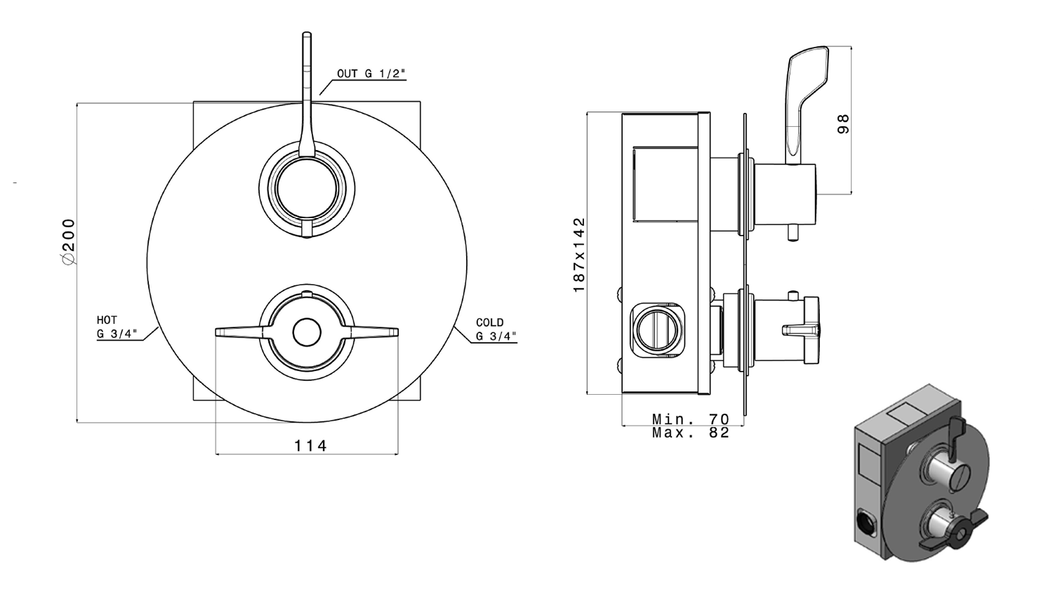 52034 AQUALINE 35 zuhanycsaptelep, 220mm kifolyócsővel és orvosi karral