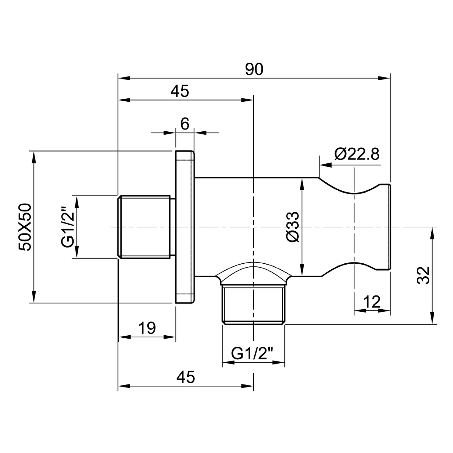 MI035 MINIMAL fix zuhanytartó, vízbekötéses csatlakozóval, inox