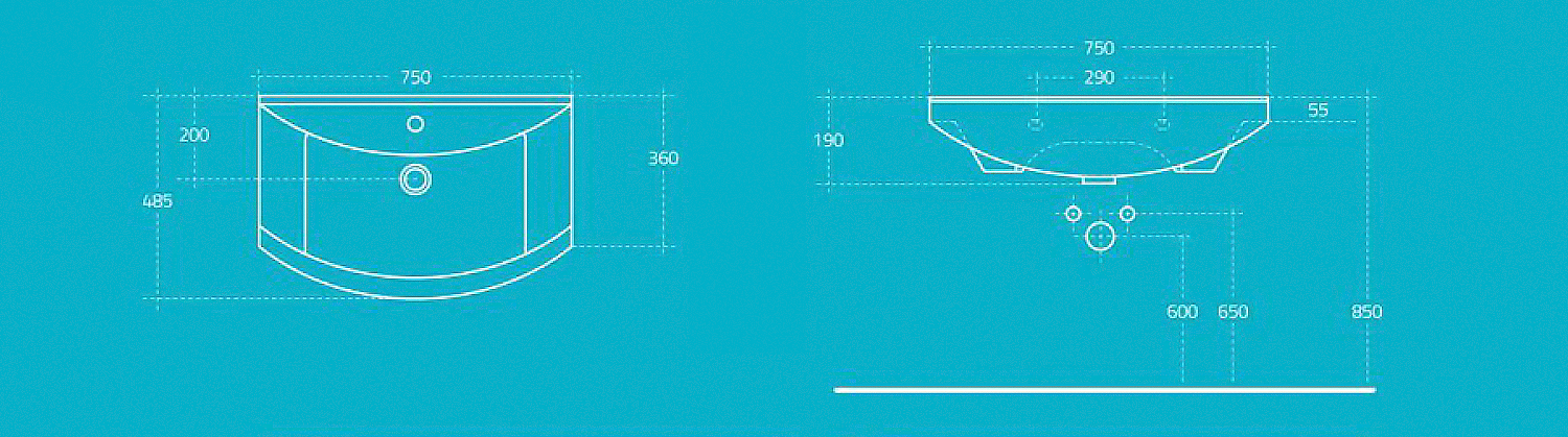 AQUALINE ZERO kerámiamosdó, 75x48,5cm (6075)