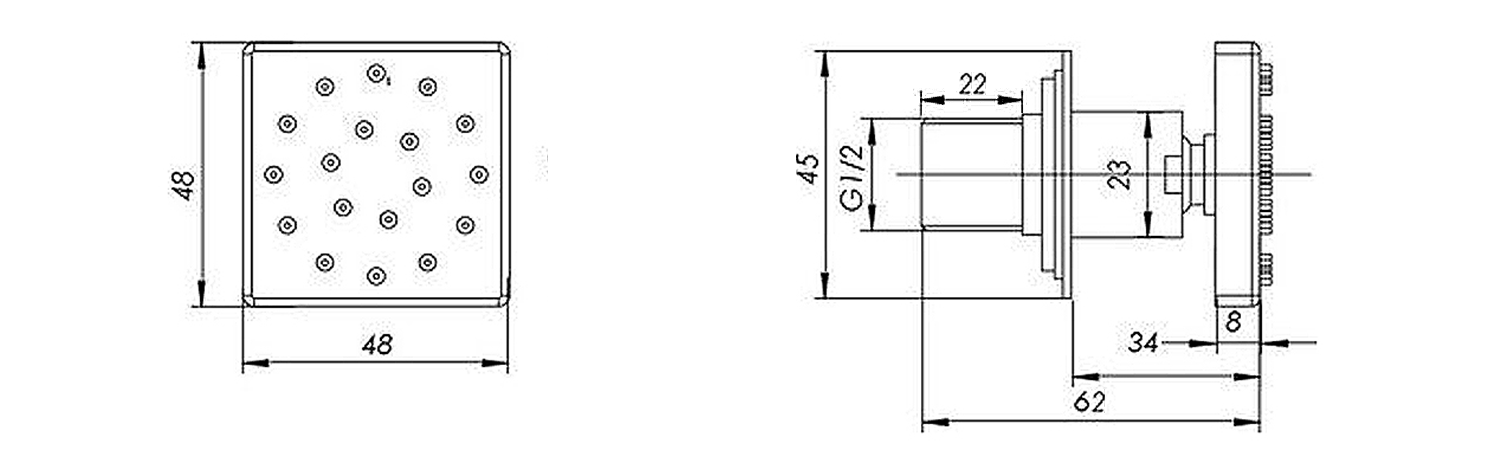 Fali fúvóka, négyzet alakú, 1/2", 45x45mm, króm (AB536)