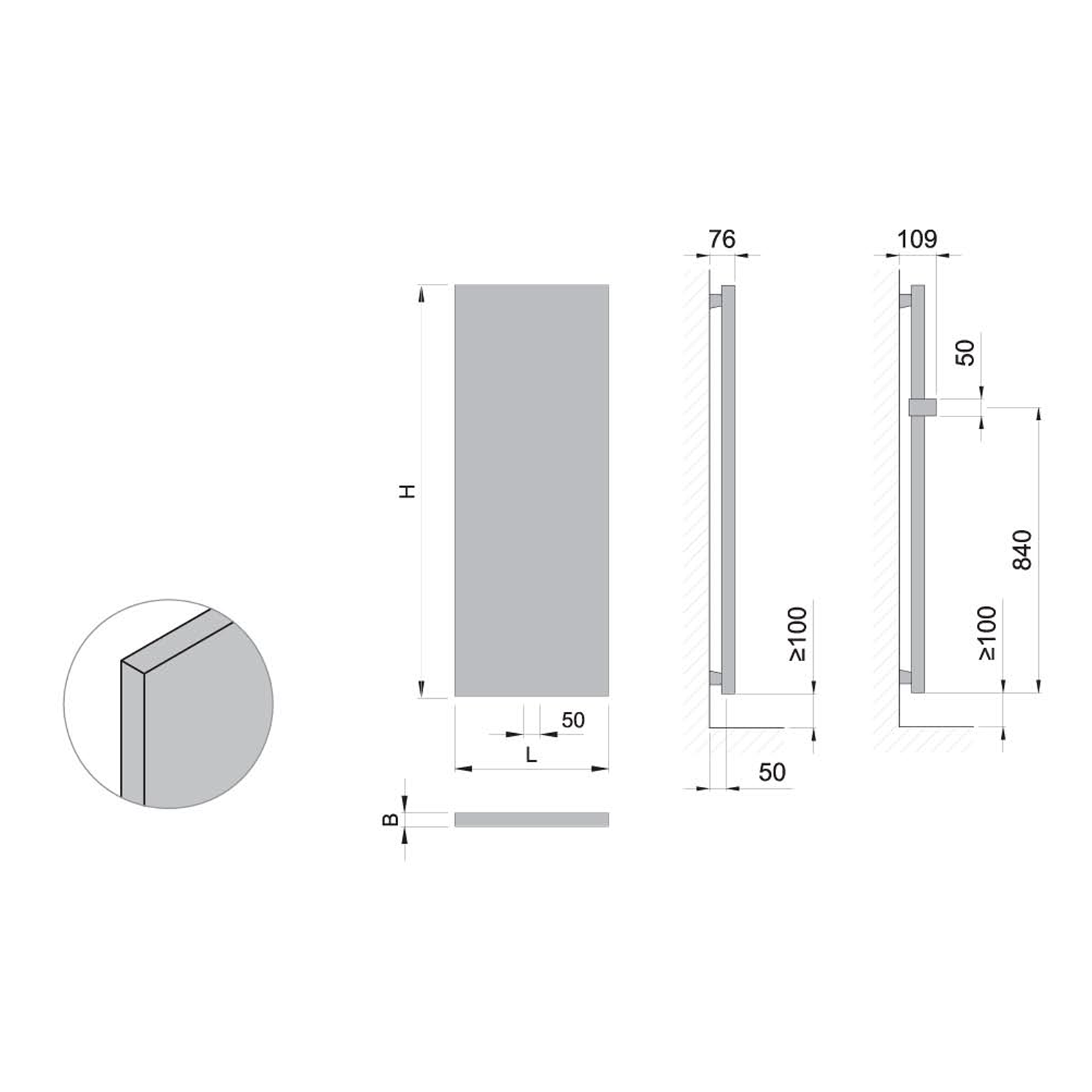 Towel rail with a 50 mm connection spacing