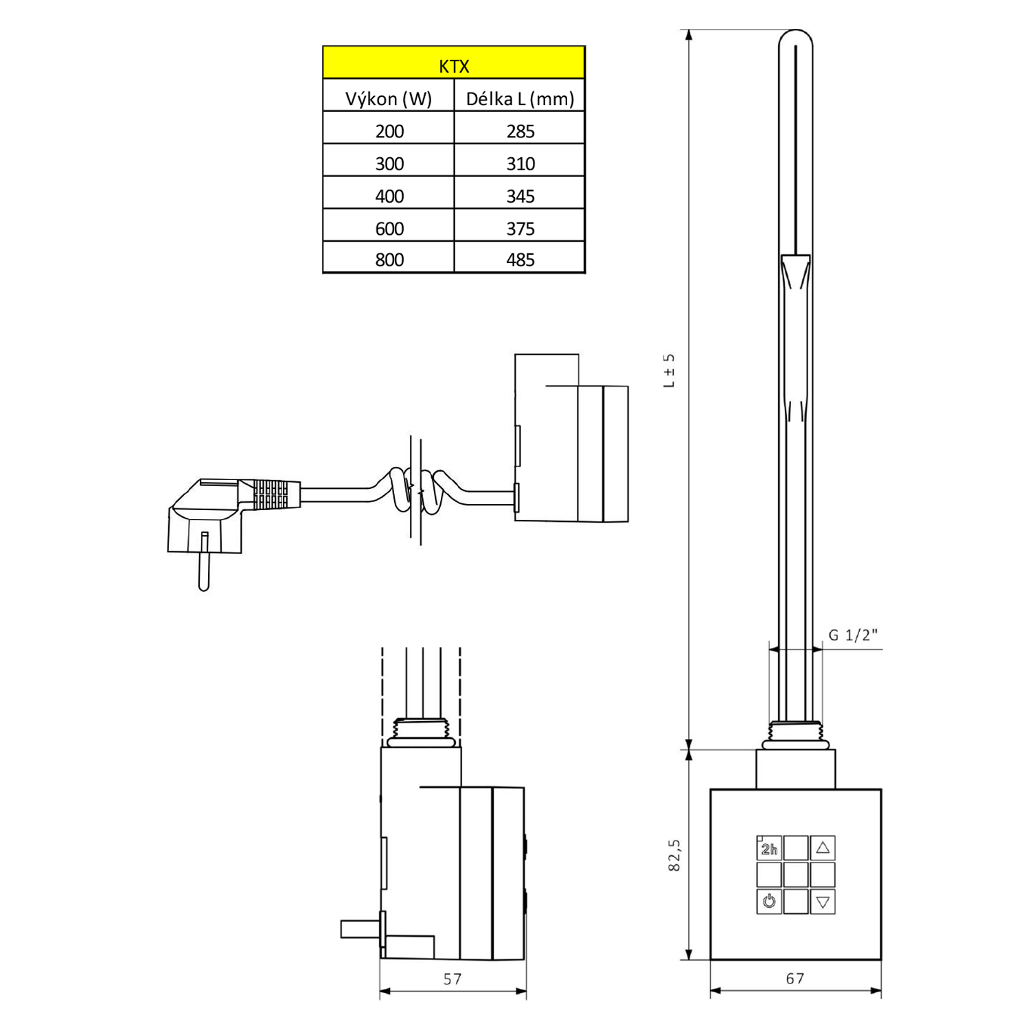 KTX-C-300 KTX Elektromos termosztátos fűtőpatron, 300W, króm