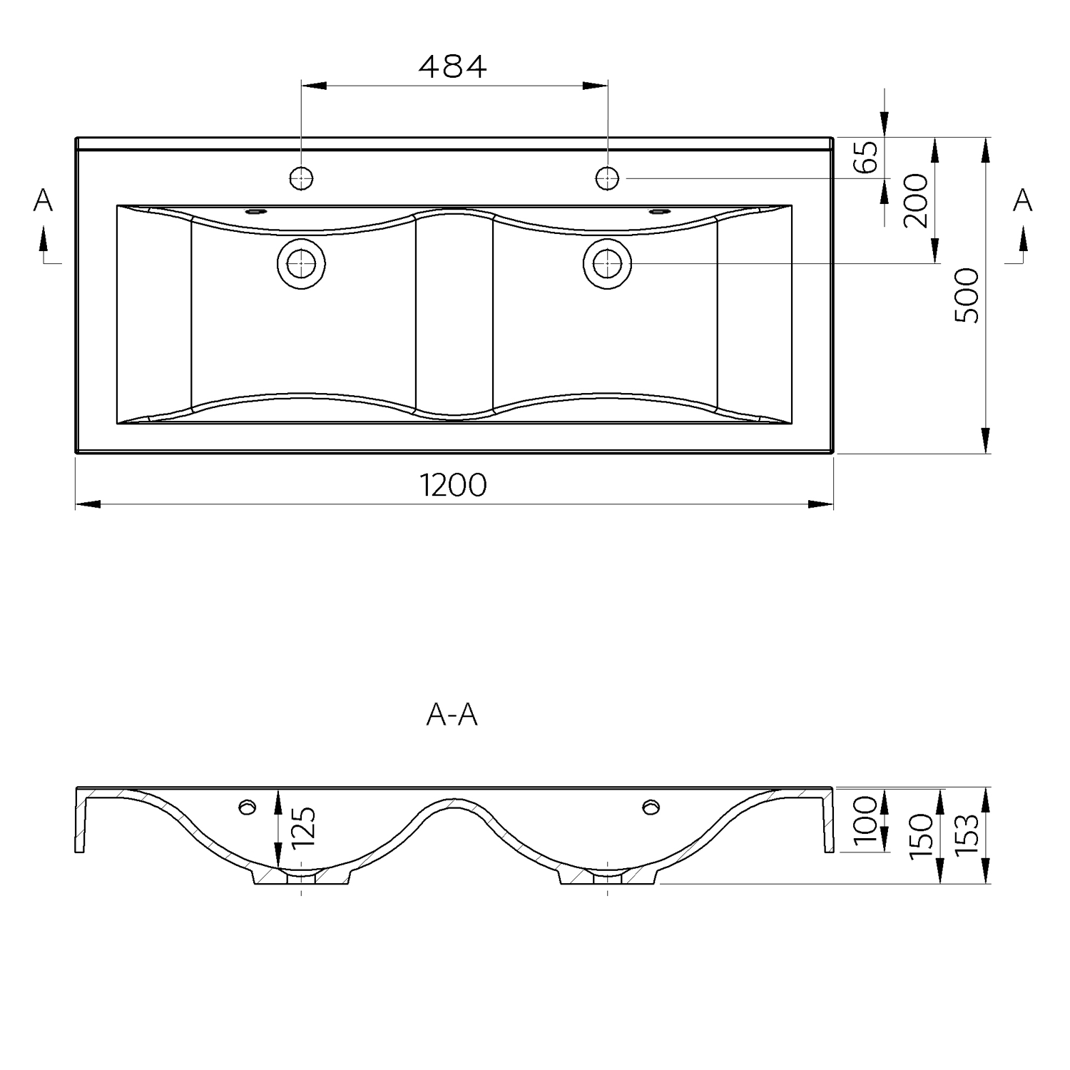 68154 FLAVIA öntöttmárvány duplamosdó, 150x10x50cm
