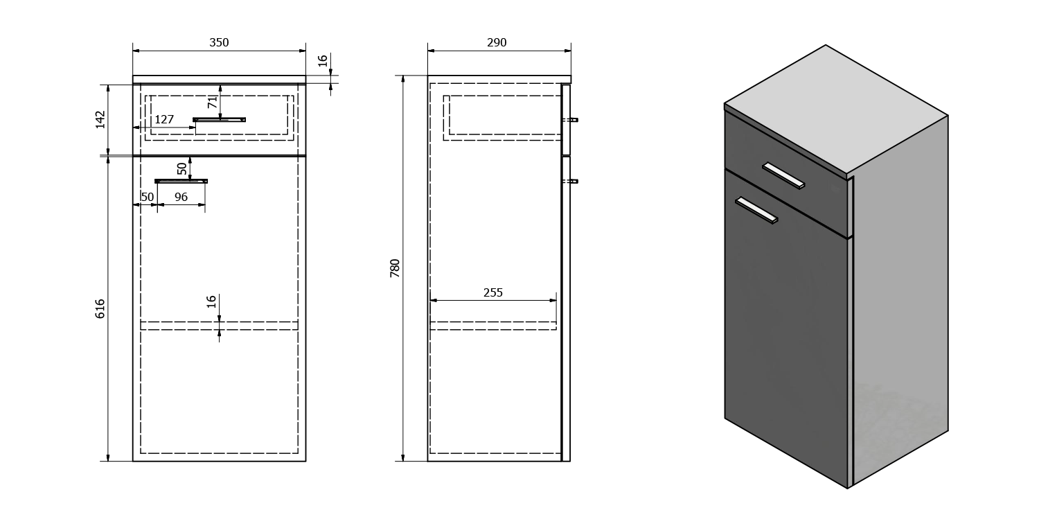 51256 AQUALINE ZOJA szekrény fiókkal, 35x78x29 cm, mali wenge, jobbos