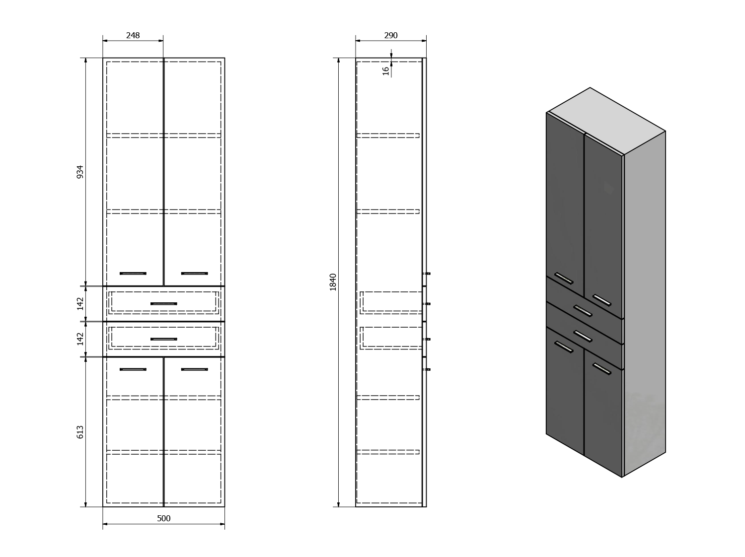 51292 AQUALINE ZOJA állószekrény fiókkal, 50x184x29cm, mali wenge