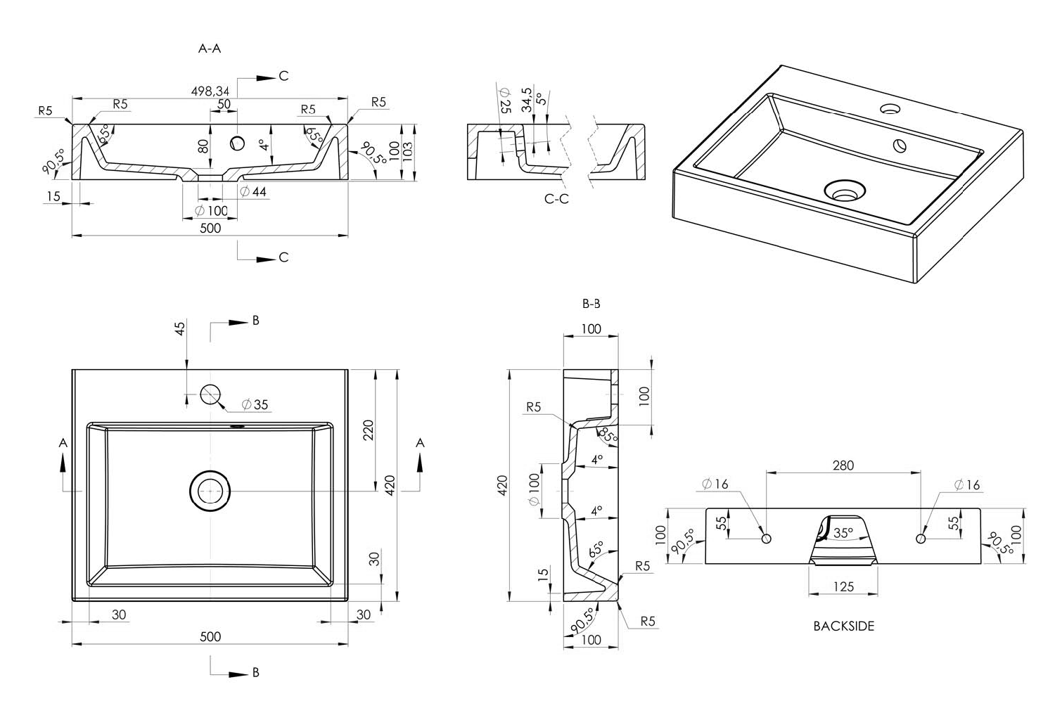 ORINOKO öntöttmárvány mosdó, 50x10x42cm (OR050)