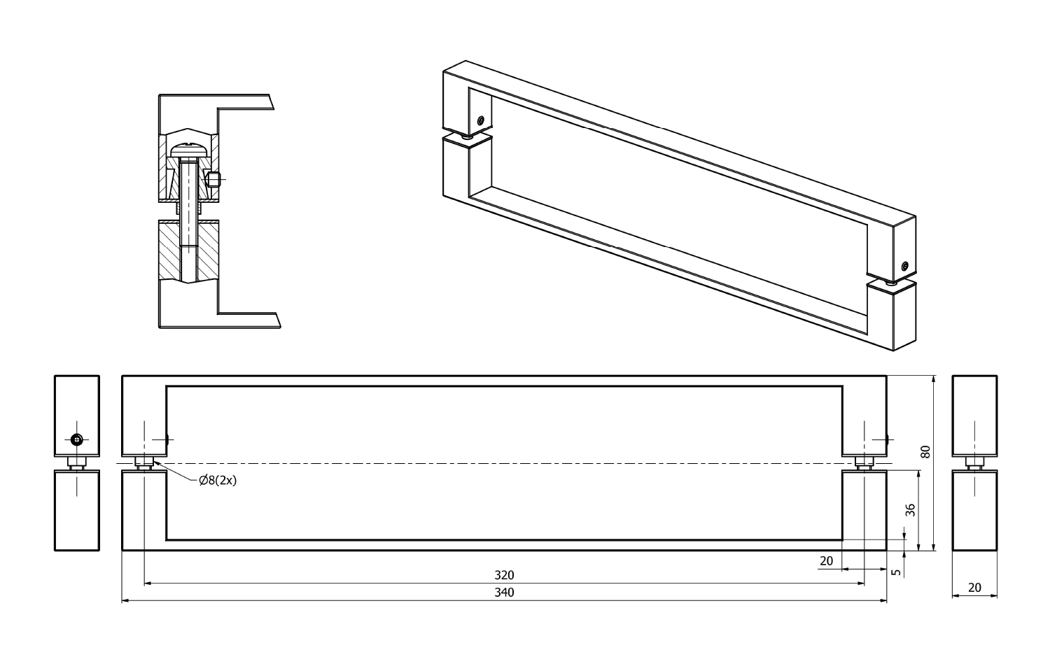 POLYSAN LUCIS LINE szögletes fogantyú, 340x20x36mm, króm (92888)