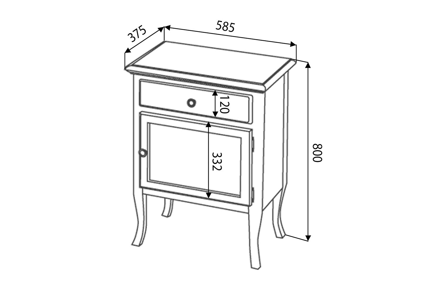 1714 RETRO alsószekrény, 1 fiókkal, 1 ajtóval, balos, 60x80x38 cm, antik fehér