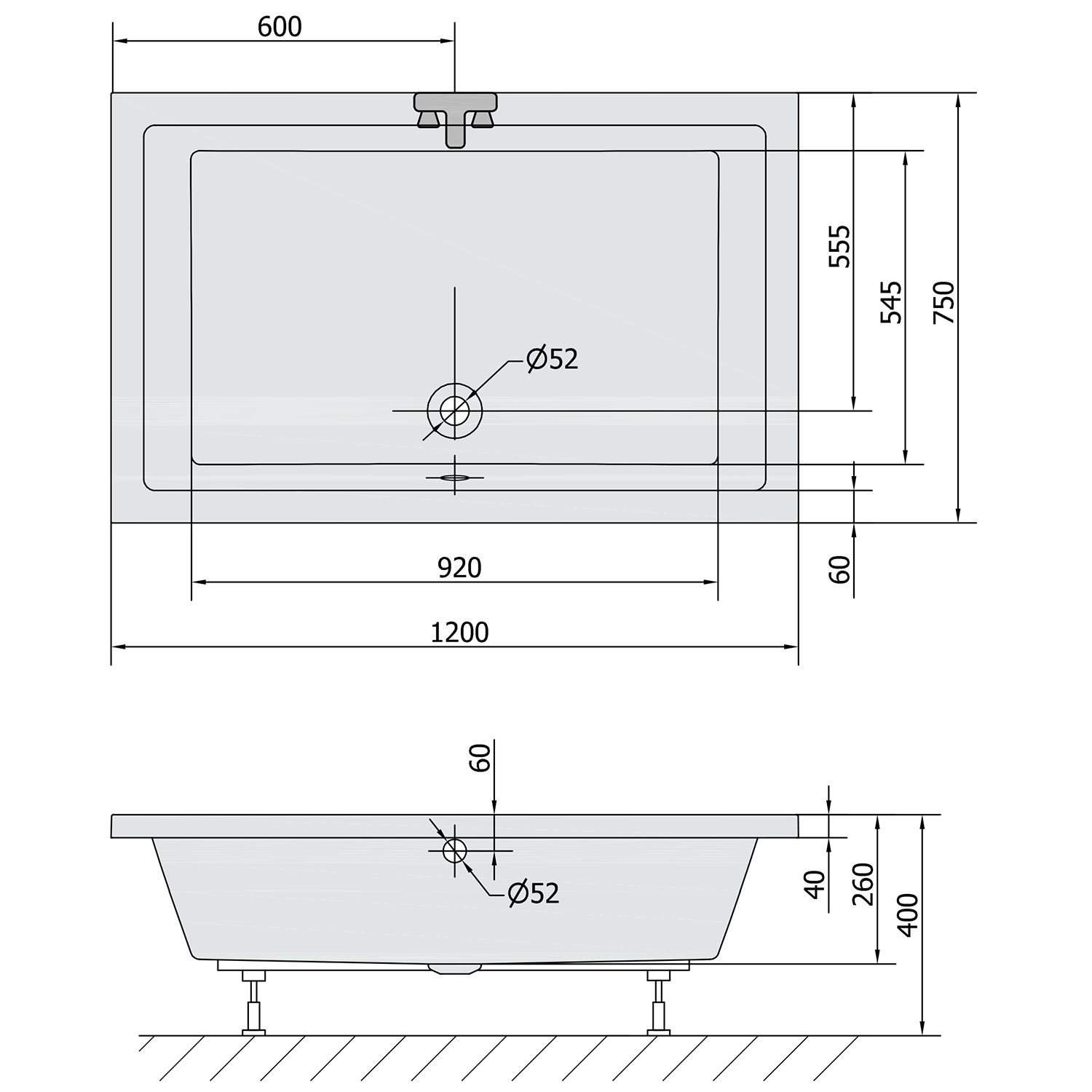 78796 POLYSAN DEEP szögletes mély zuhanytálca lábszerkezettel, 120x75x26cm