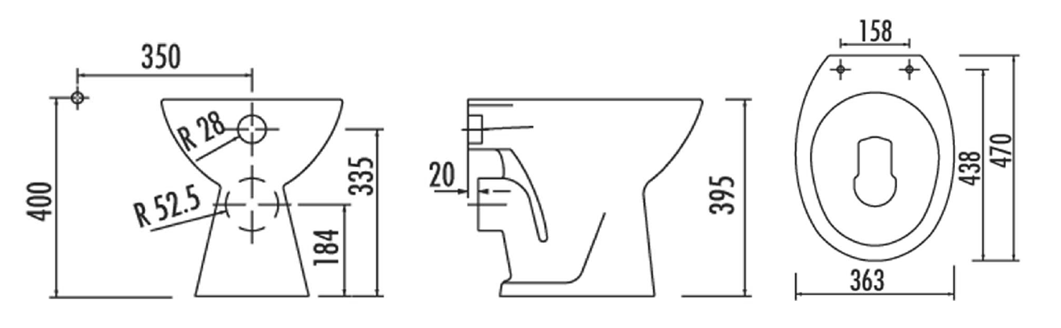 AQUALINE CREAVIT álló WC, hátsó kifolyású 36,3x47cm (TP330)
