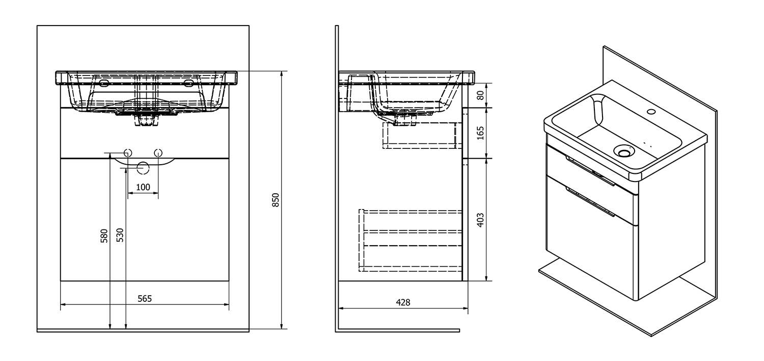 EL065-3030-01 ELLA mosdótartó szekrény CITY mosdóval, 56,5x65x43cm