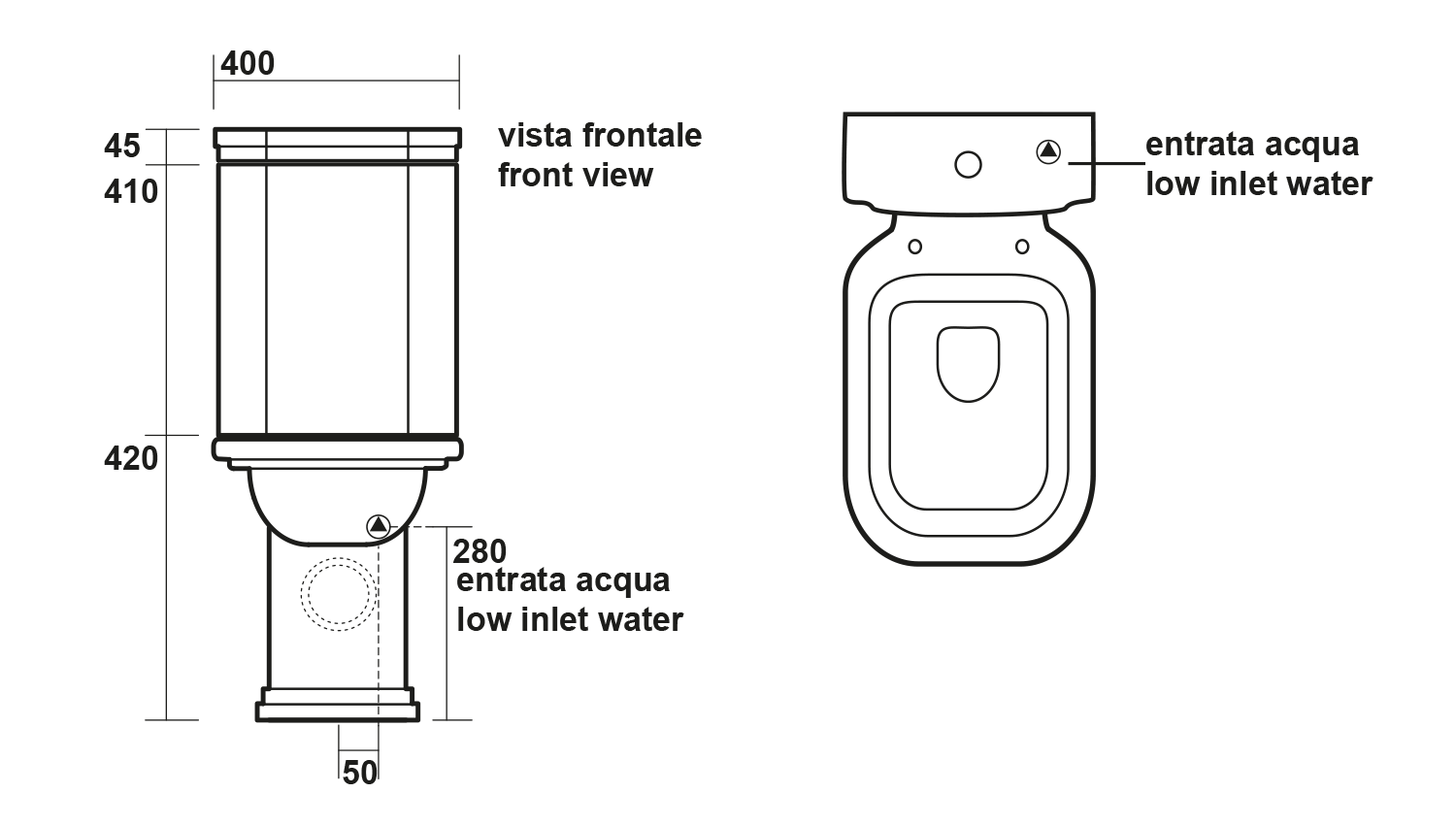 411701 KERASAN WALDORF kombi WC, alsó/hátsó kifolyású, 40x42x68cm