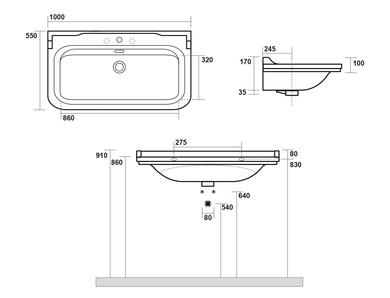 4141K1-3 KERASAN WALDORF kerámiamosdó, 3 furattal, 80x55cm