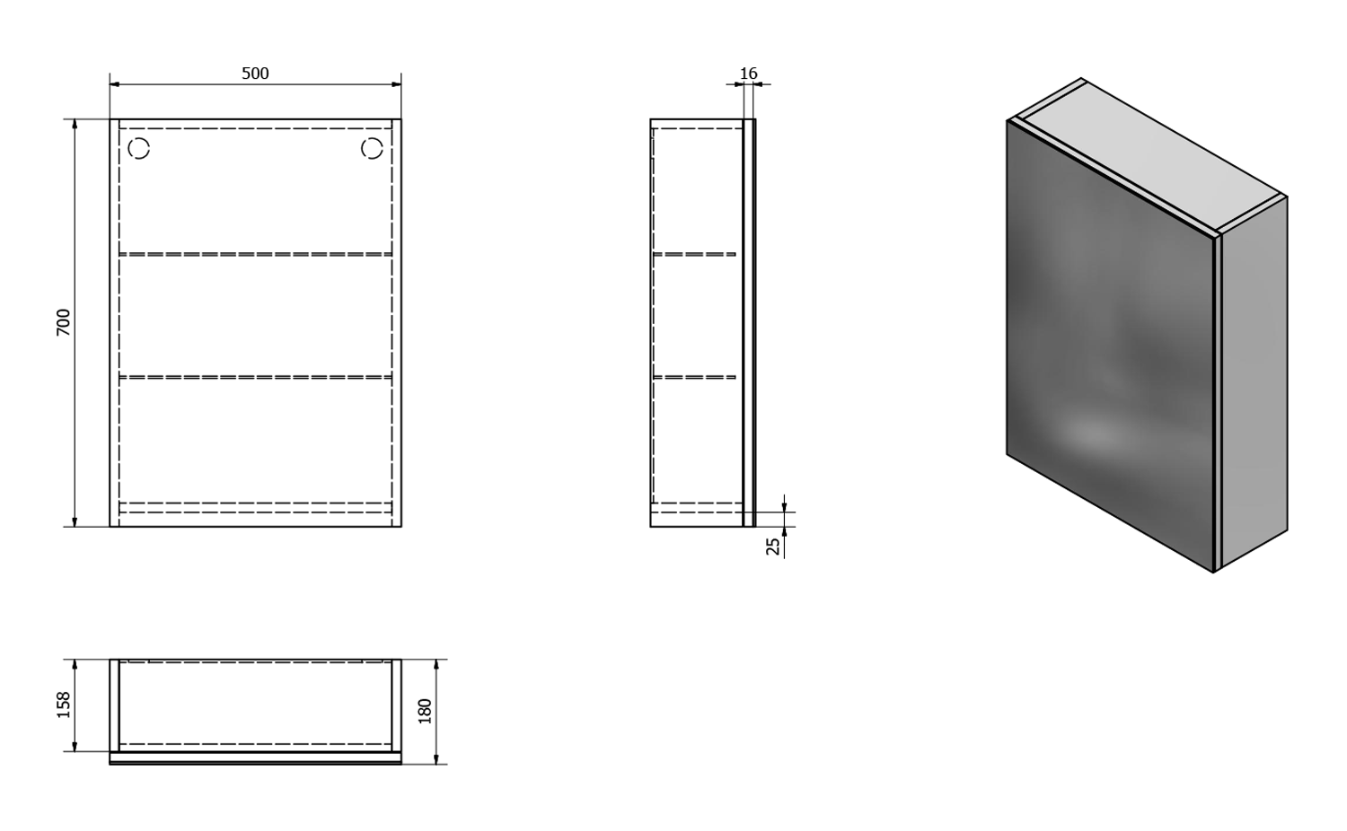 AQUALINE VEGA tükrösszekrény, 50x70x18, fehér (VG050)