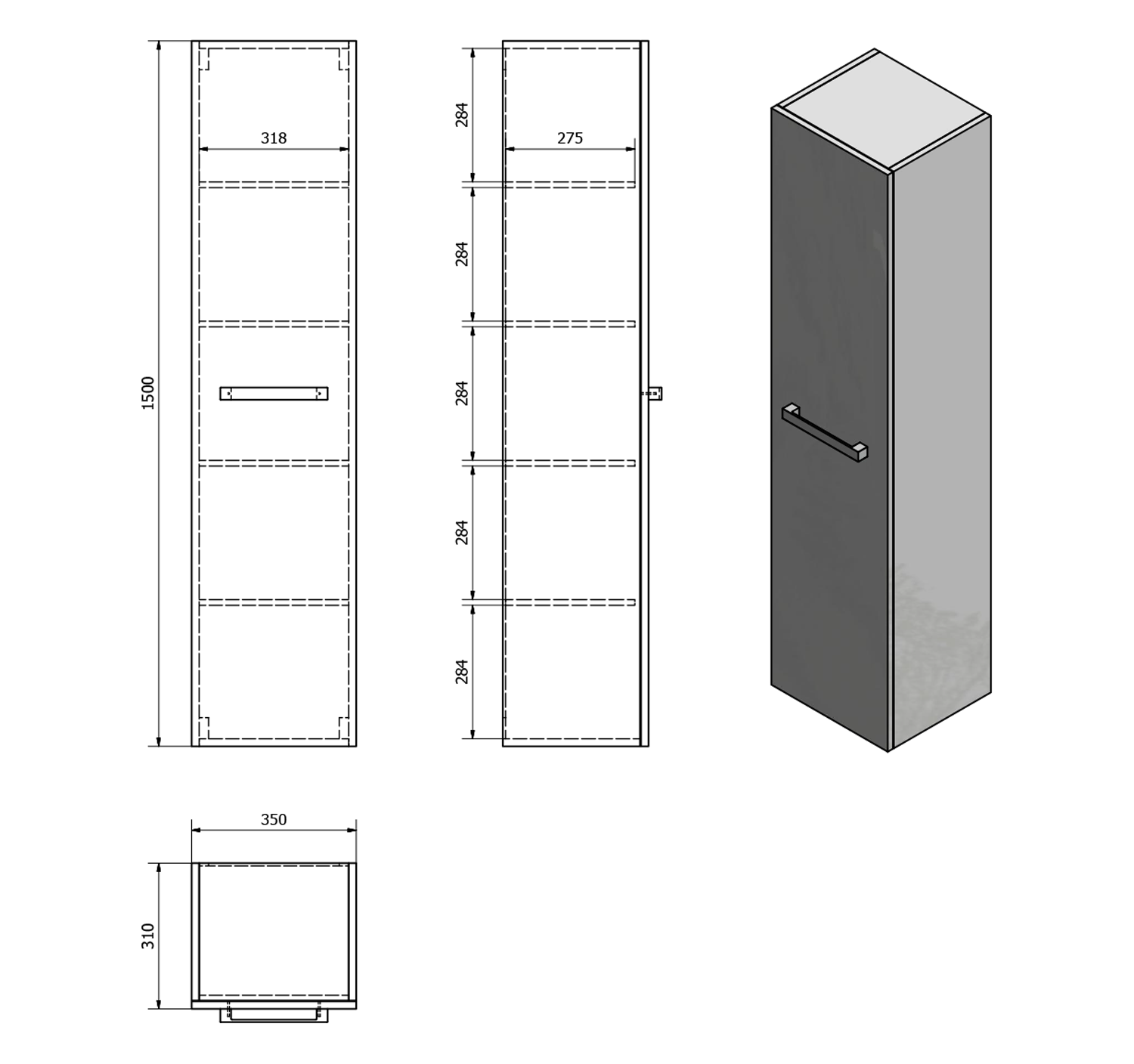 AQUALINE VEGA állószekrény, 35x150x31cm (VG150)