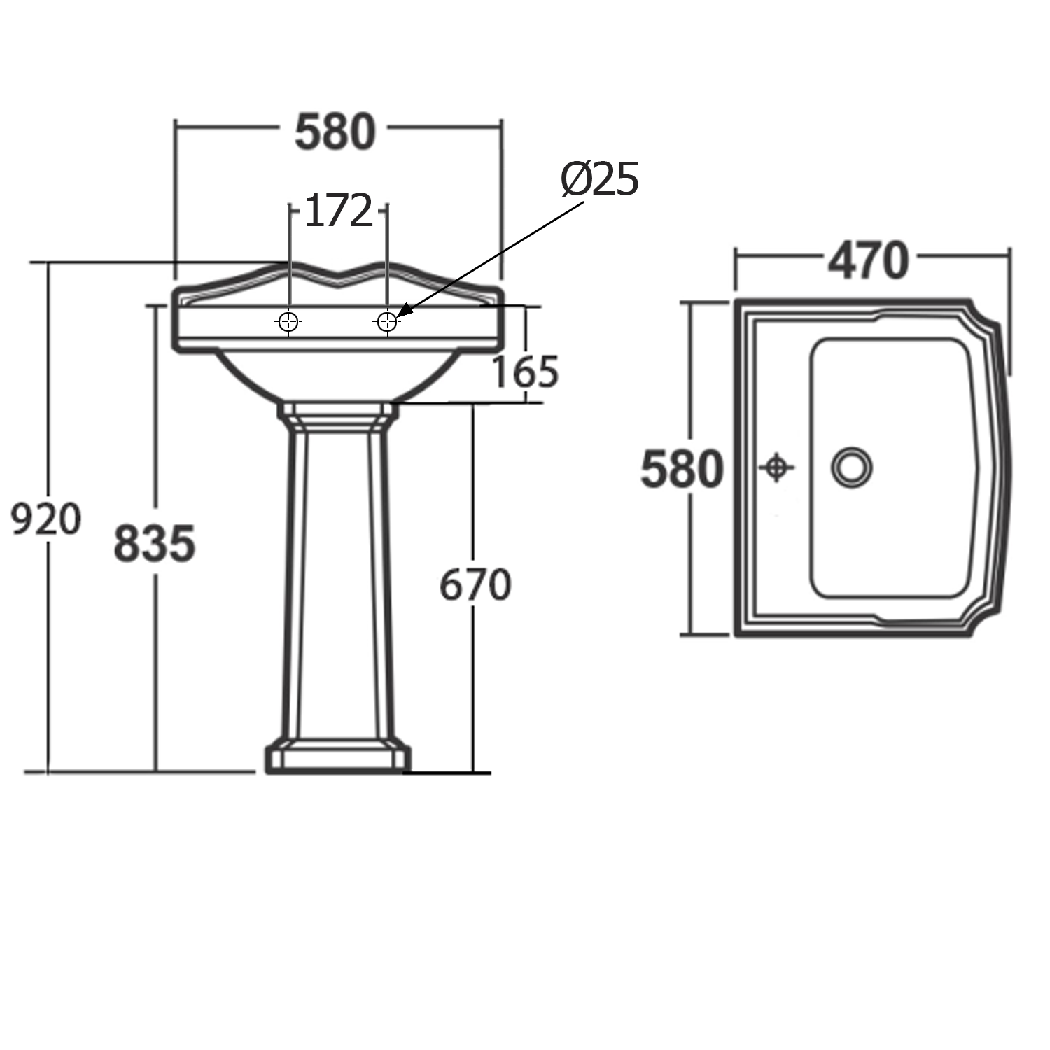 AQUALINE ANTIK kerámiamosdó, 58x47cm (AK102)