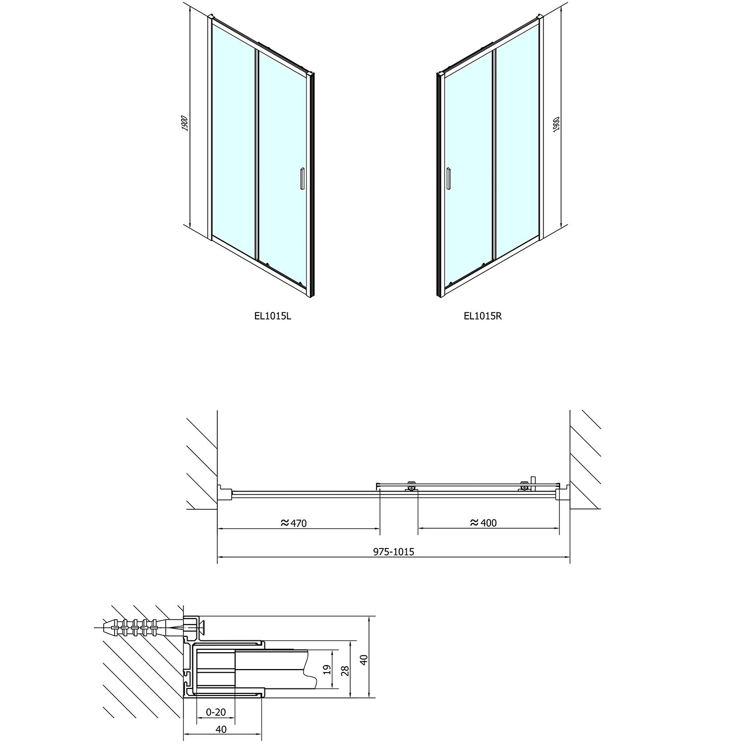 EL1015EL3315 POLYSAN EASY LINE zuhanyajtó oldalfallal, jobbos/balos, 1000x900mm, transzparent üveg