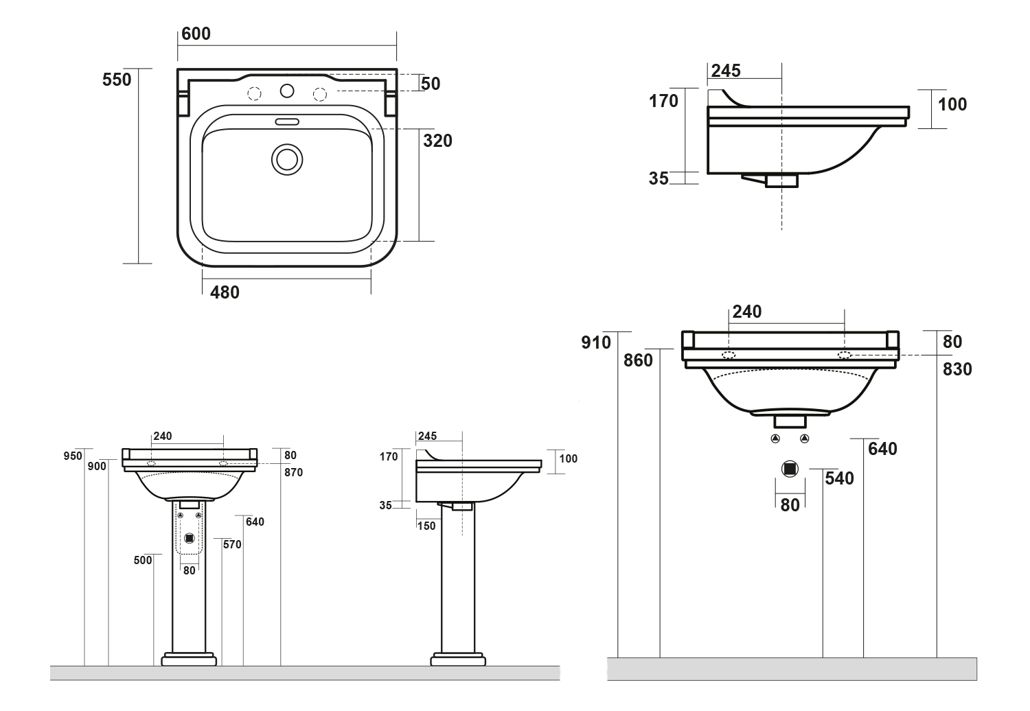 4141K1-3 KERASAN WALDORF kerámiamosdó, 3 furattal, 80x55cm