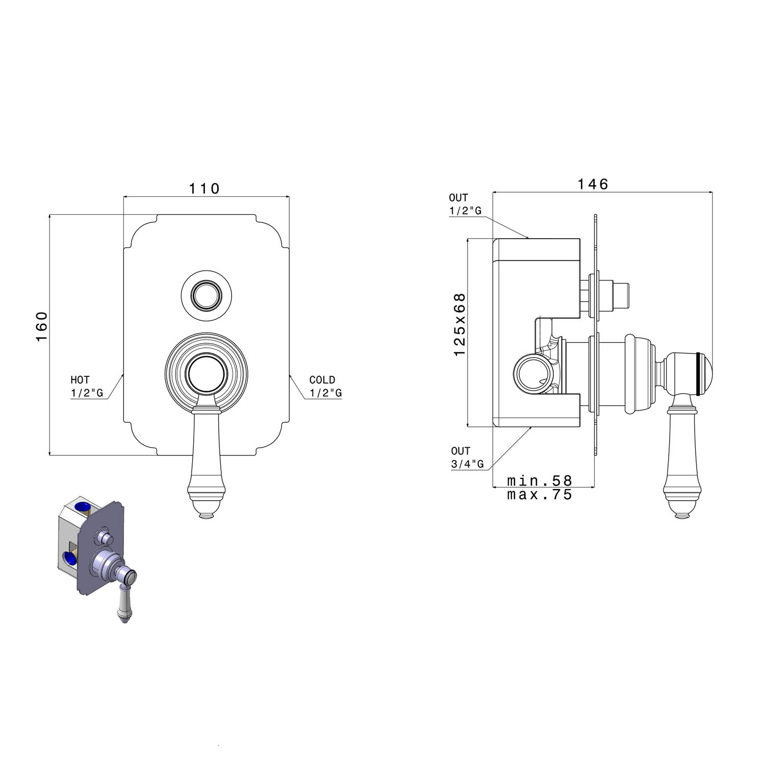 VO041 VIENNA falba süllyesztett zuhanycsaptelep, 1-irányú váltóval, zuhanyszett nélkül, króm