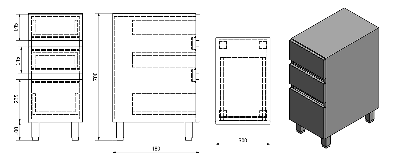 Furniture is equipped travels drawers with slow release and an automatic closing movement drawers. No more noisy closing.