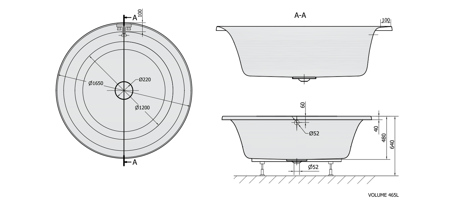 POLYSAN OBLO kör kád lábszerkezettel, le-túlfolyó nélkül, 165x48cm (72840)