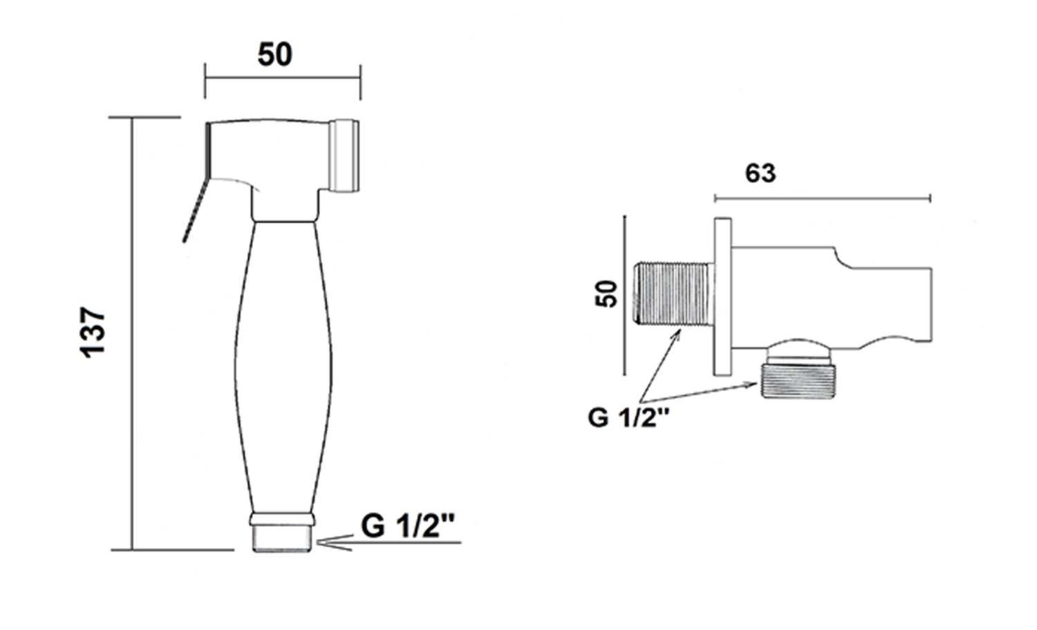 REITANO bidézuhany, retro zuhanyfejjel, tartóval, gégecsővel, bronz (9106)