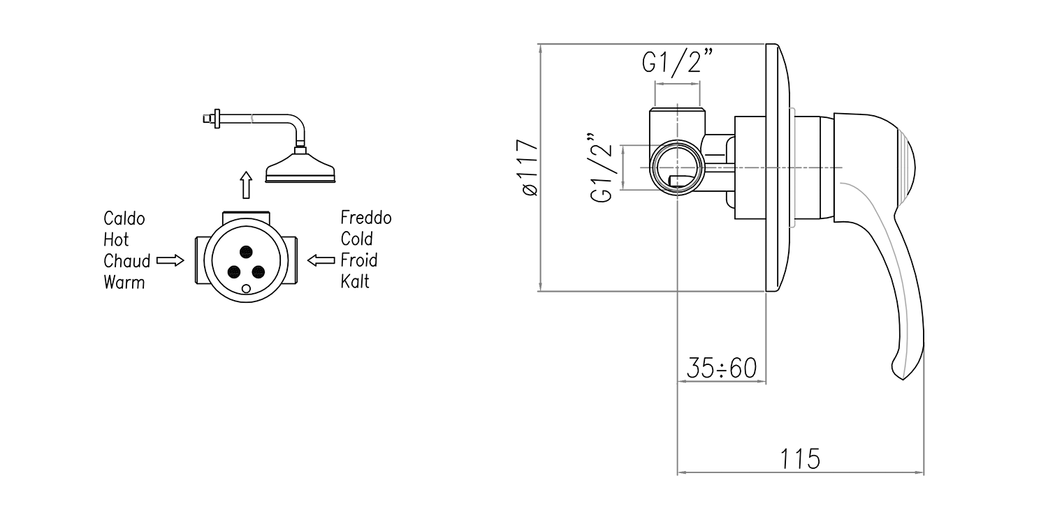 KI41B KIRKÉ falsík alatti zuhanycsaptelep, 1-irányú váltóval, bronz