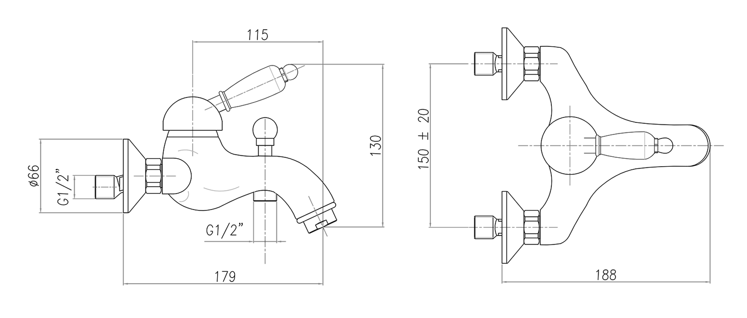 KI15BC KIRKÉ fali csaptelep, fehér kerámia karral, króm