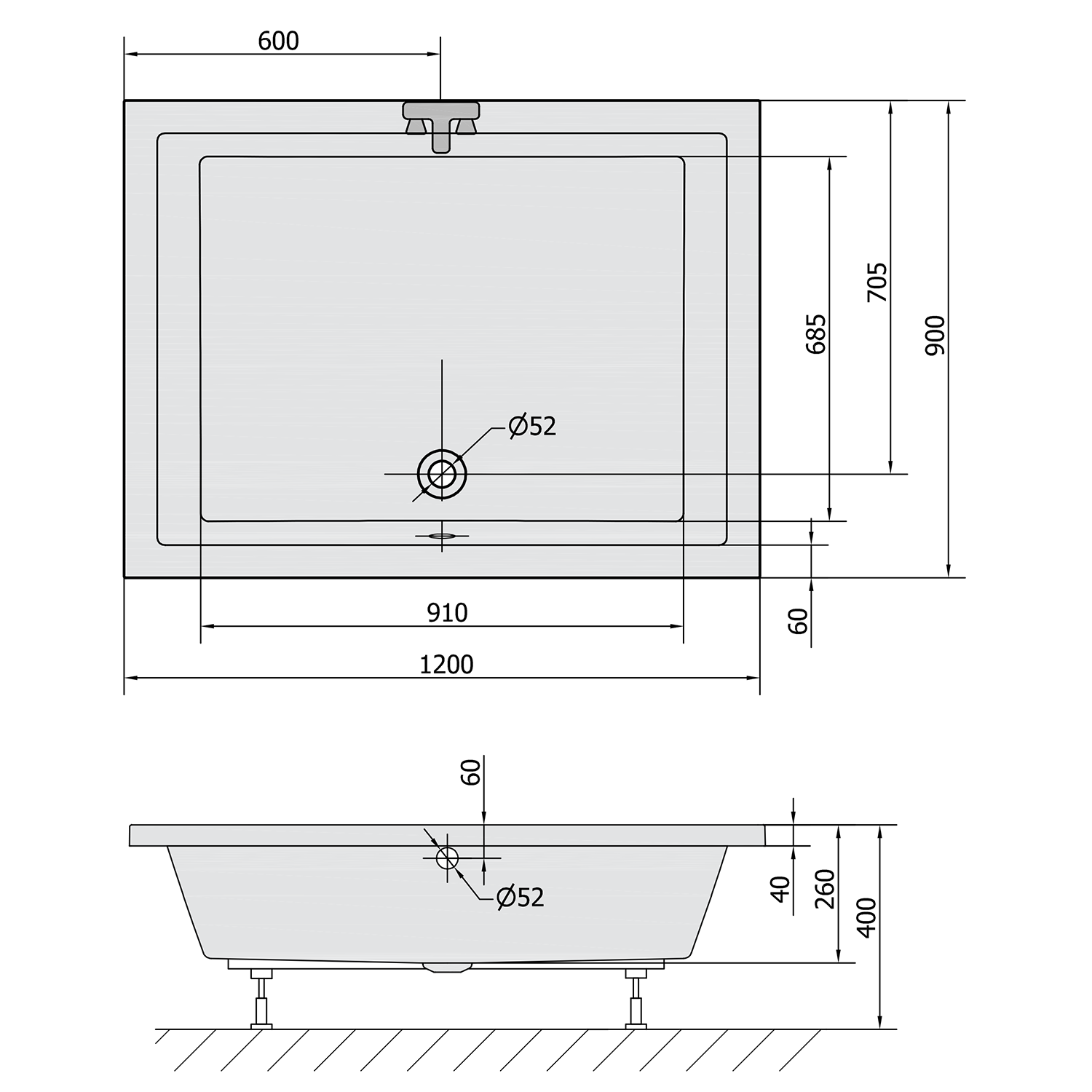 78796 POLYSAN DEEP szögletes mély zuhanytálca lábszerkezettel, 120x75x26cm