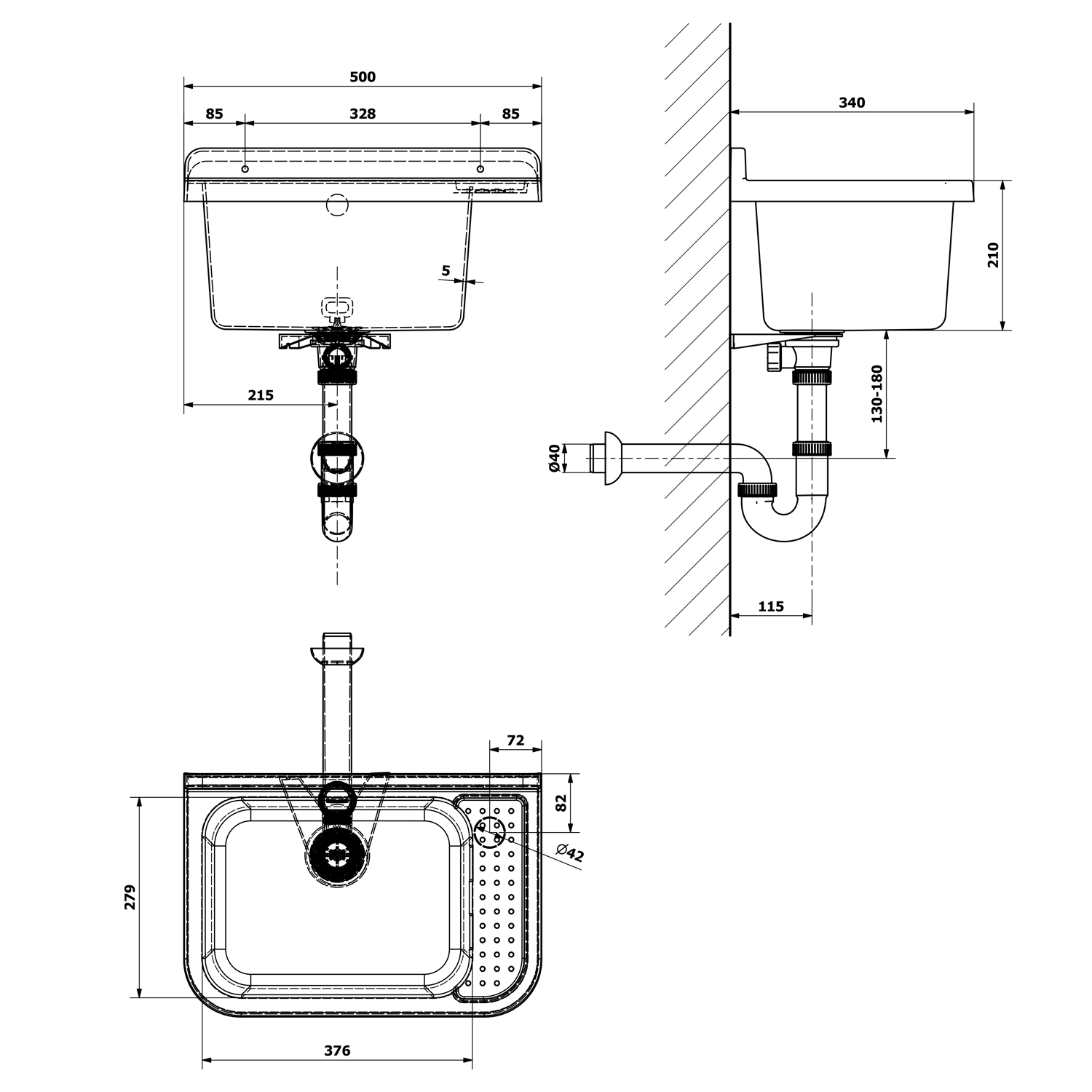 PI5055 AQUALINE Fali kiöntő, szifonnal, 55x34cm, PVC, fehér