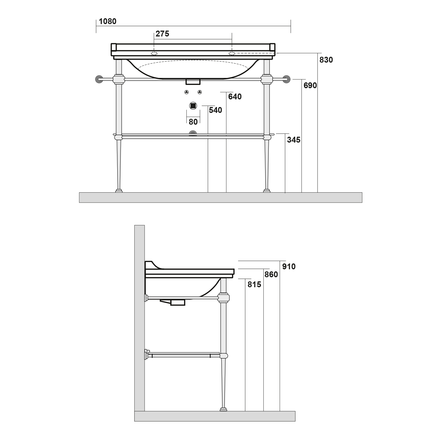 4141K1-3 KERASAN WALDORF kerámiamosdó, 3 furattal, 80x55cm