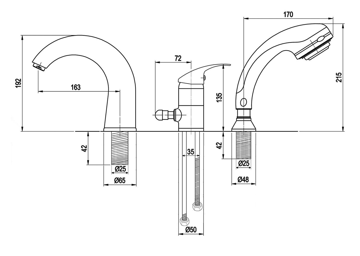 1107-10 AQUALINE KASIOPEA kádtöltő csaptelep, bekötés:150mm