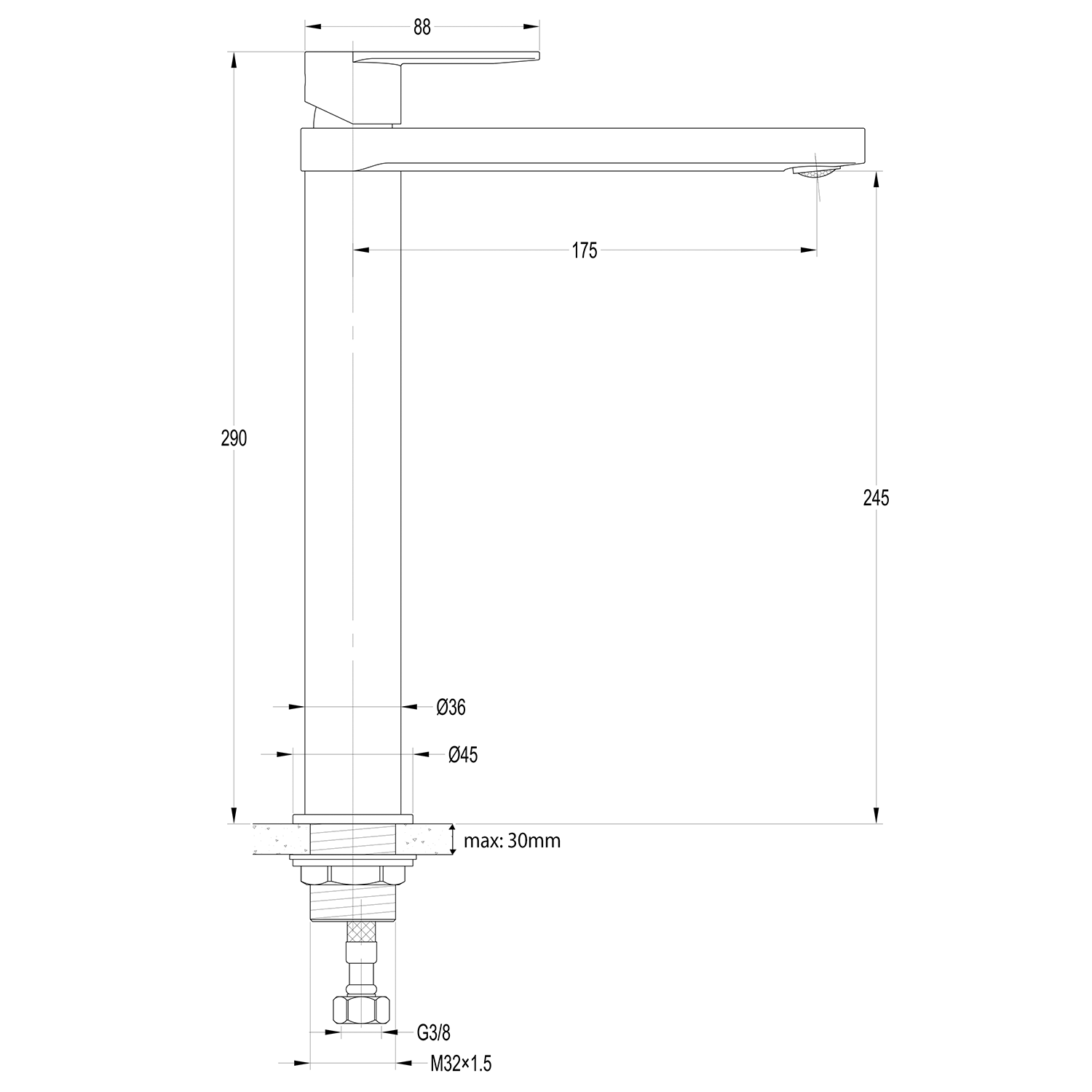DH601B AQUALINE DAPHNE magasított mosdócsaptelep leeresztő nélkül, fekete