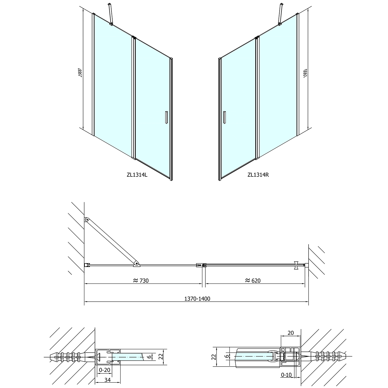 ZL1314ZL3210 POLYSAN ZOOM LINE zuhanyajtó és oldalfal, jobbos/balos, 1400x1000mm, transzparent, króm
