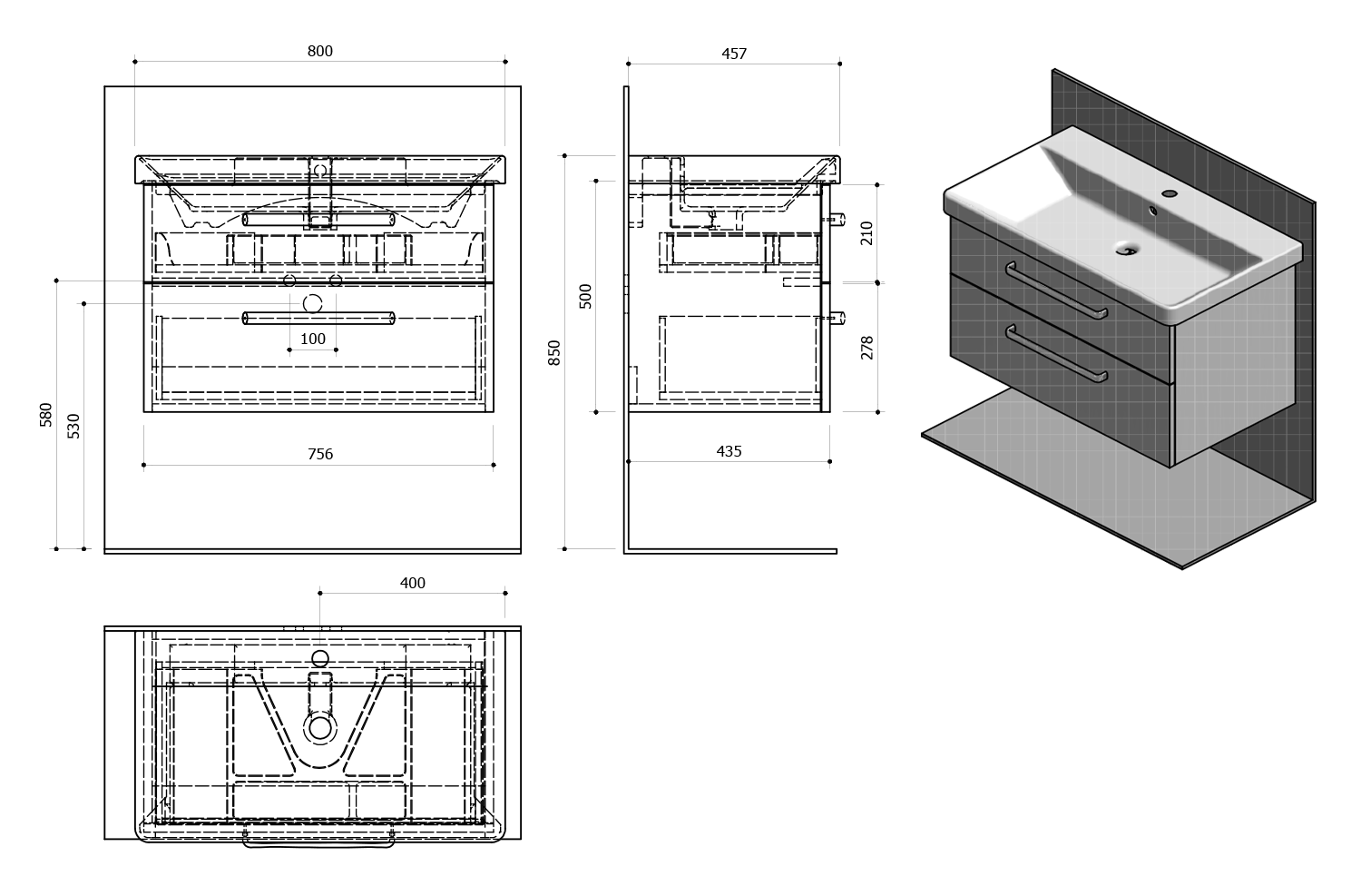 Furniture is equipped travels drawers with slow release and an automatic closing movement drawers. No more noisy closing.