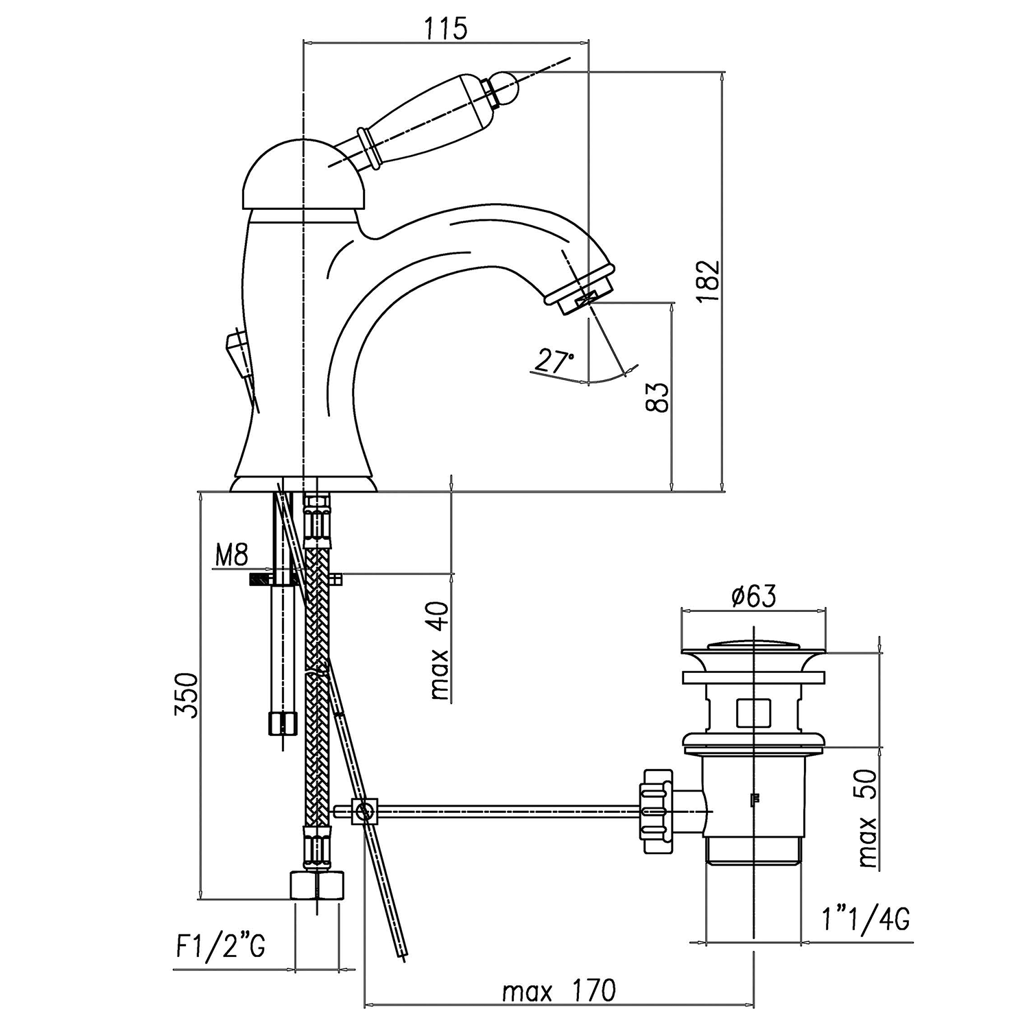 KI02BB KIRKÉ mosdócsaptelep, automata leeresztővel, fehér kerámia karral, bronz