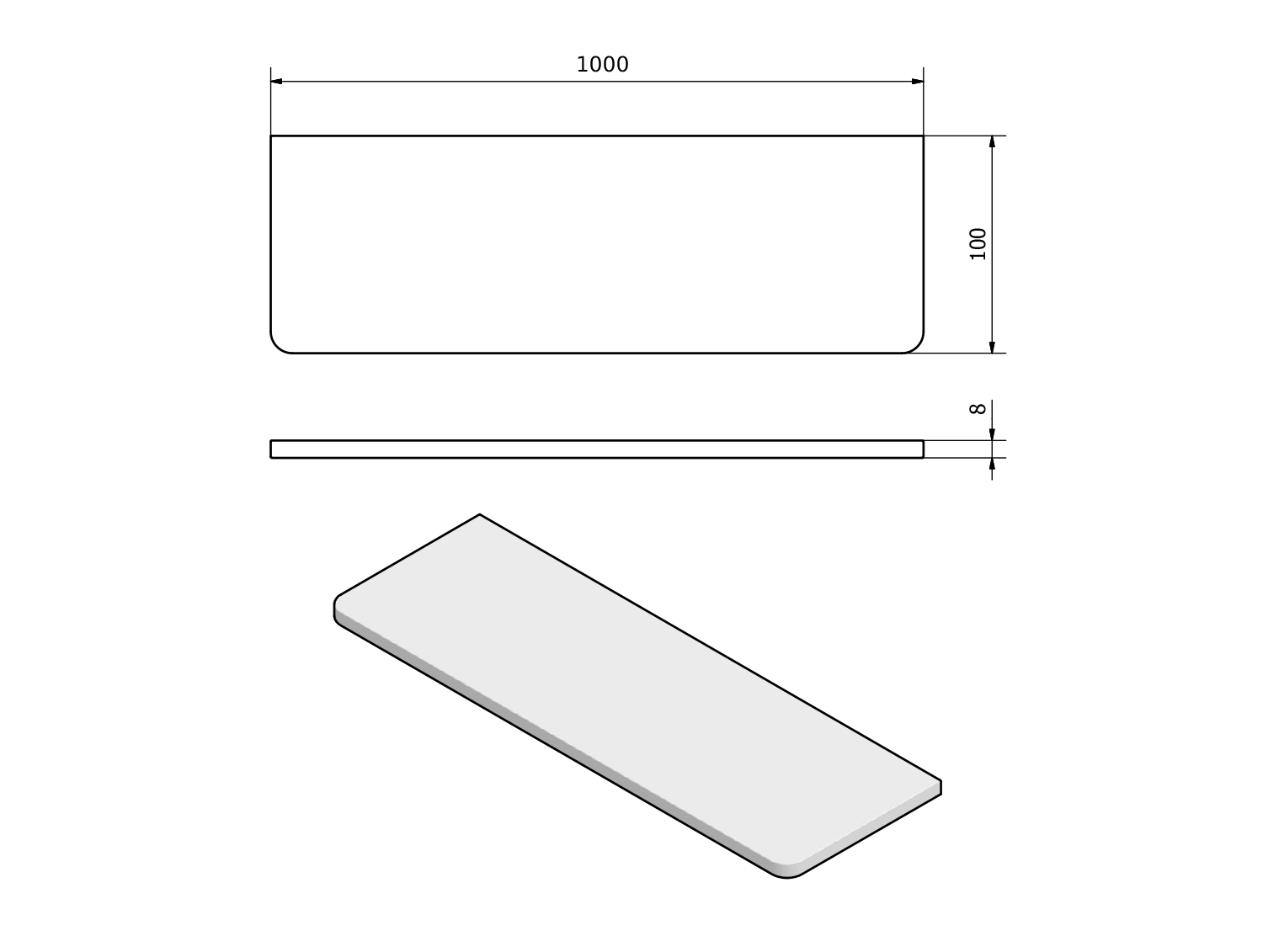 Méret1000x8x100 mm