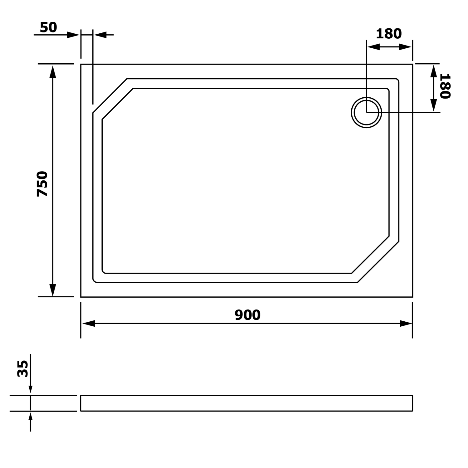 GELCO SARA öntöttmárvány zuhanytálca, 90x75x3,5cm (HS9075)