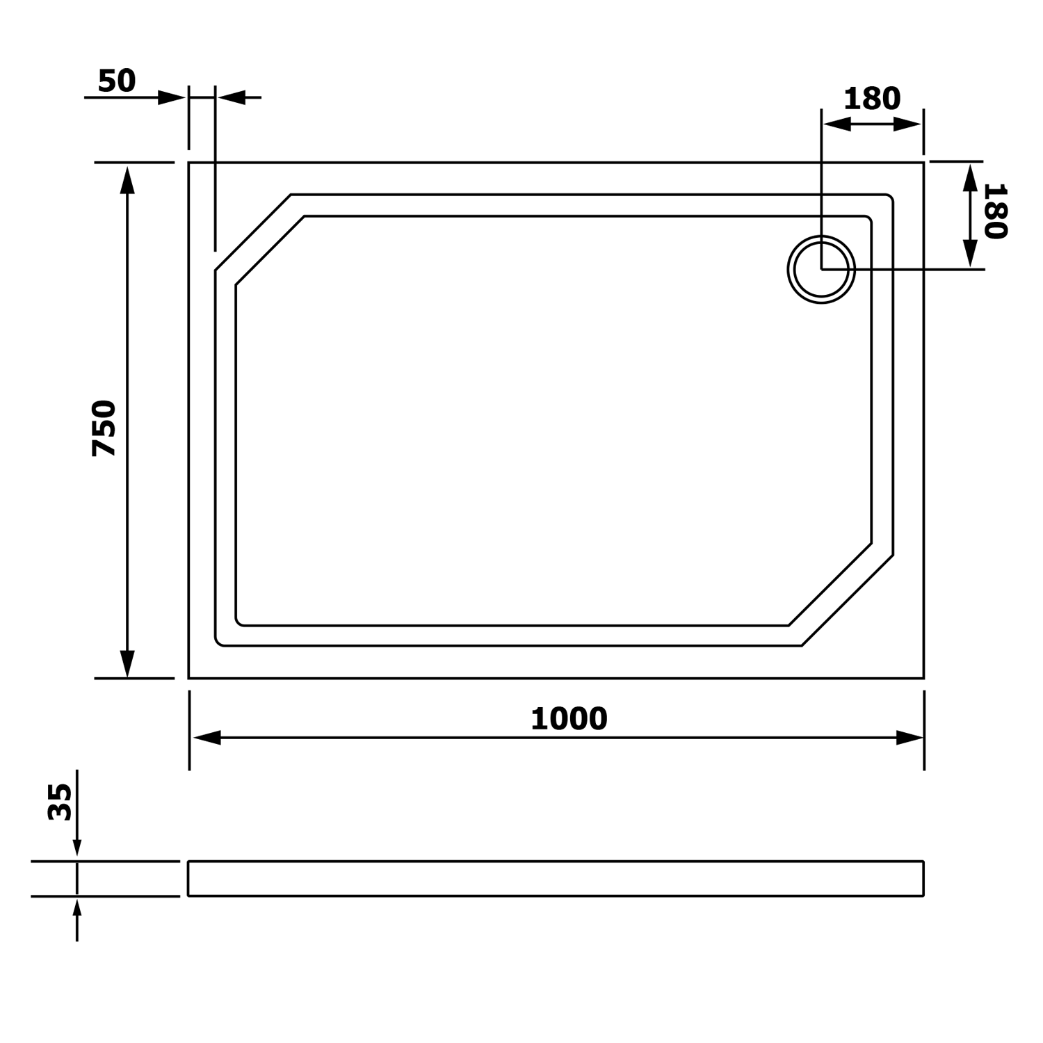 GELCO SARA öntöttmárvány zuhanytálca, 100x75x3,5cm (HS10075)