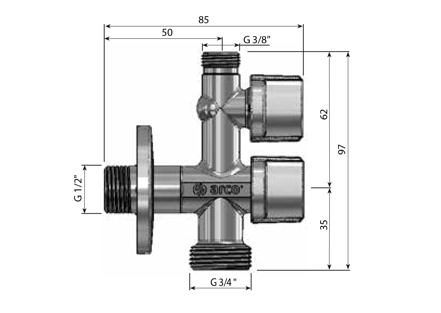 ARCO Mosogép szelep, kombinált 1/2‘‘x3/4‘‘x3/8‘‘ ANTICALC, króm (COMB5MAC)