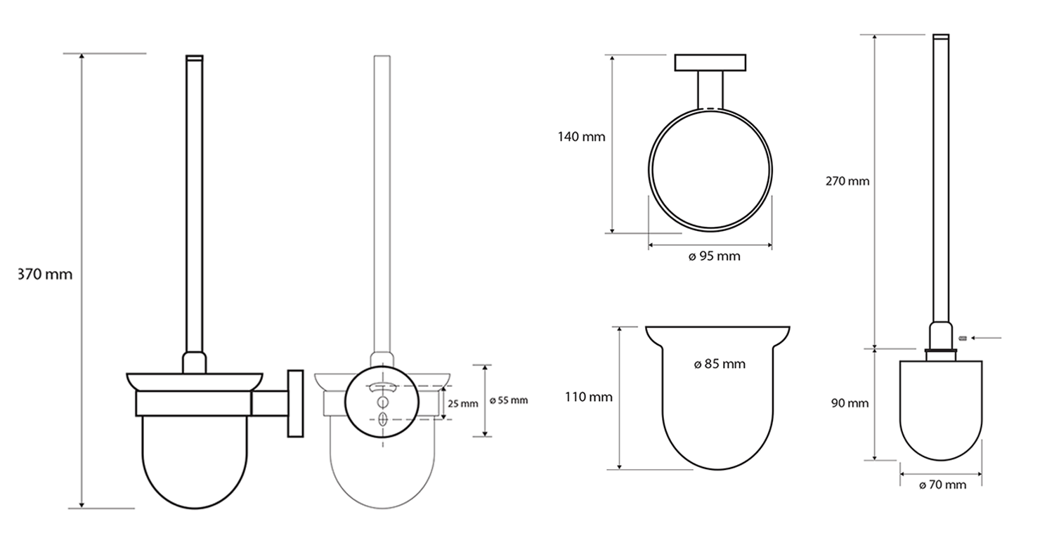 PI330314 PIRENEI WC-kefetartó, matt fekete/tejüveg