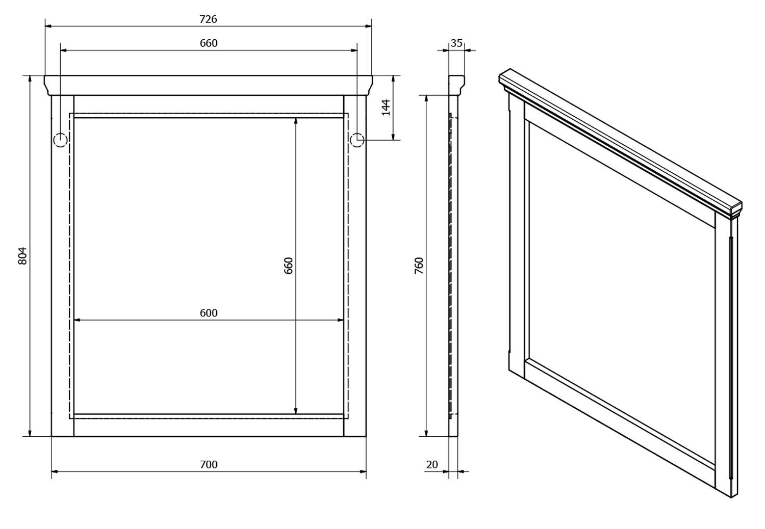 CR011 CROSS keretes tükör, 60x80x3,5cm, mahagóni