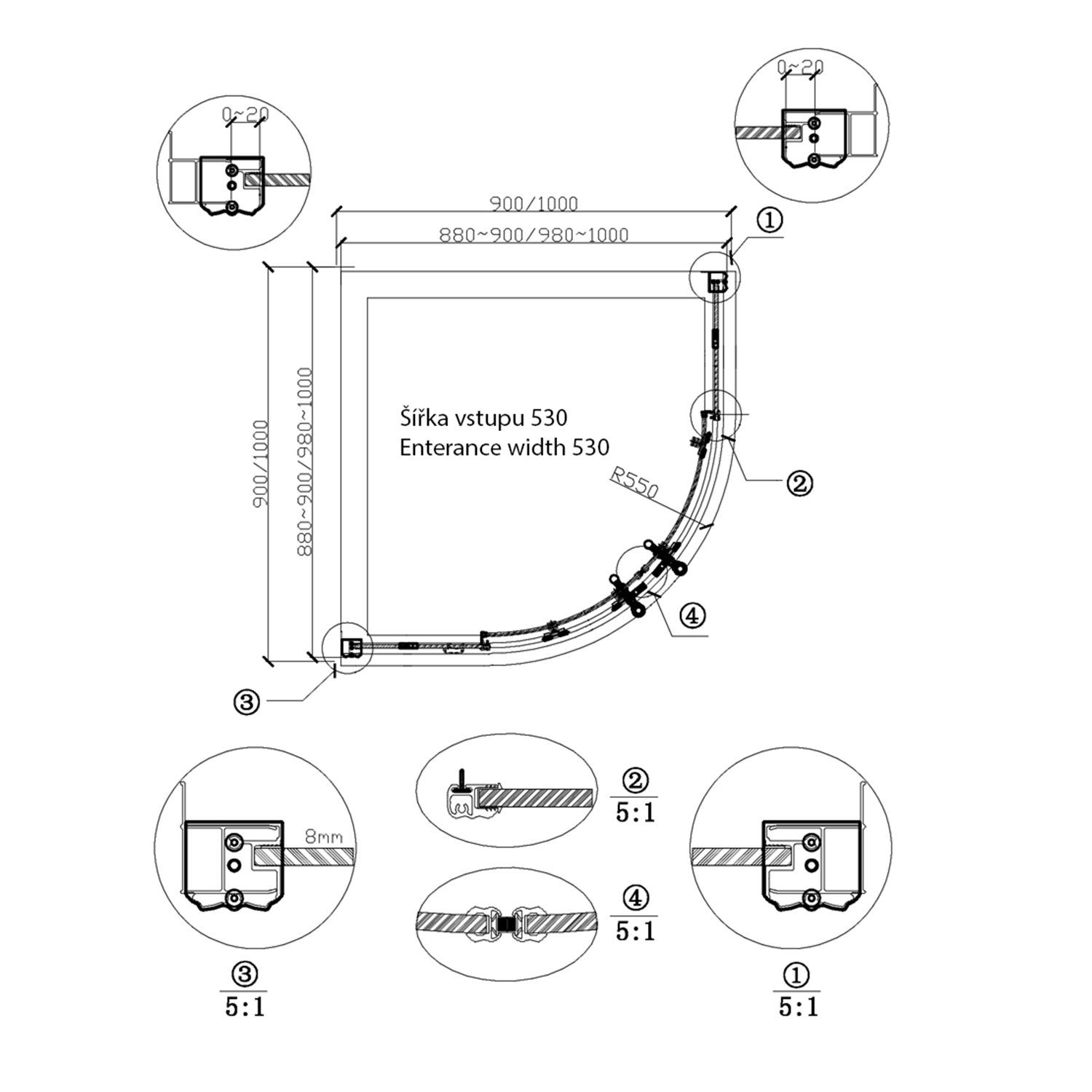 GQ1390RCGQ5680C ANTIQUE szögletes zuhanykabin 900x800mm, jobbos