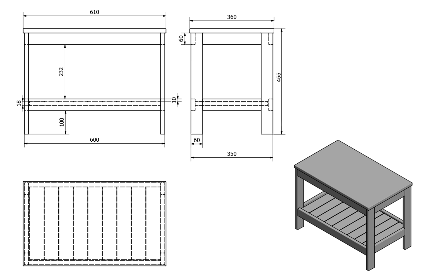 ET061 AQUALINE ETIDE polcos állvány, alacsony, 61x45x36cm, matt fehér
