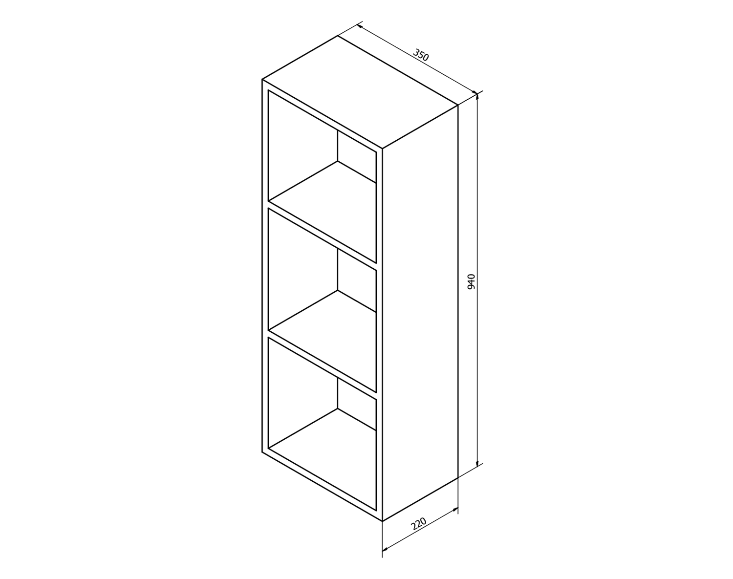 ESPACE felsőszekrény, ajtó nélkül, 35x94x22cm, rusztikus fenyő (ESC170-1616)