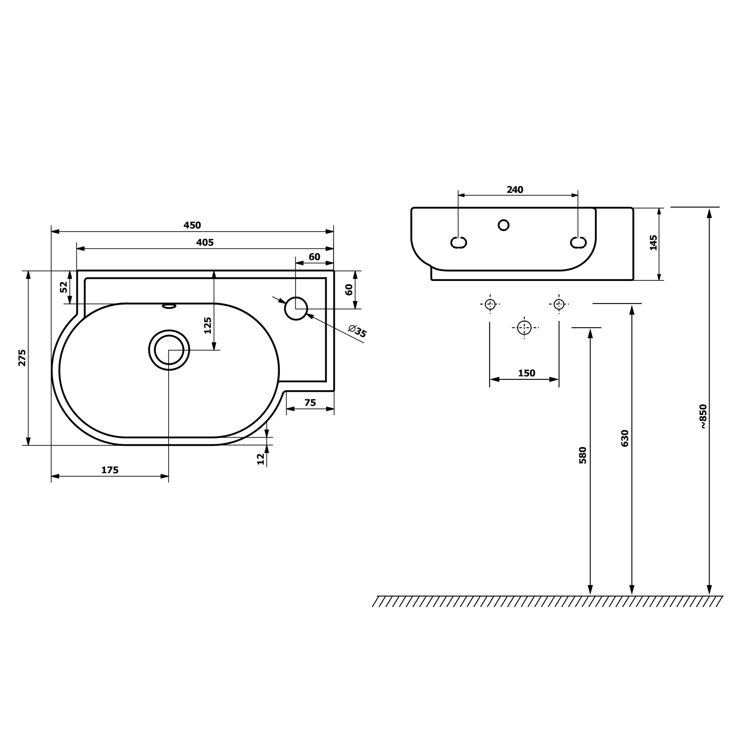 4057 MINOS kerámiamosdó, jobbos, 45x26cm