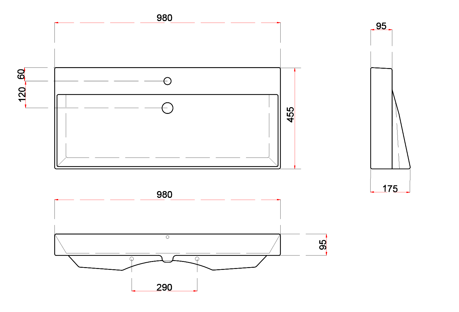 17120 KARE dupla kerámiamosdó, 120x45,5cm