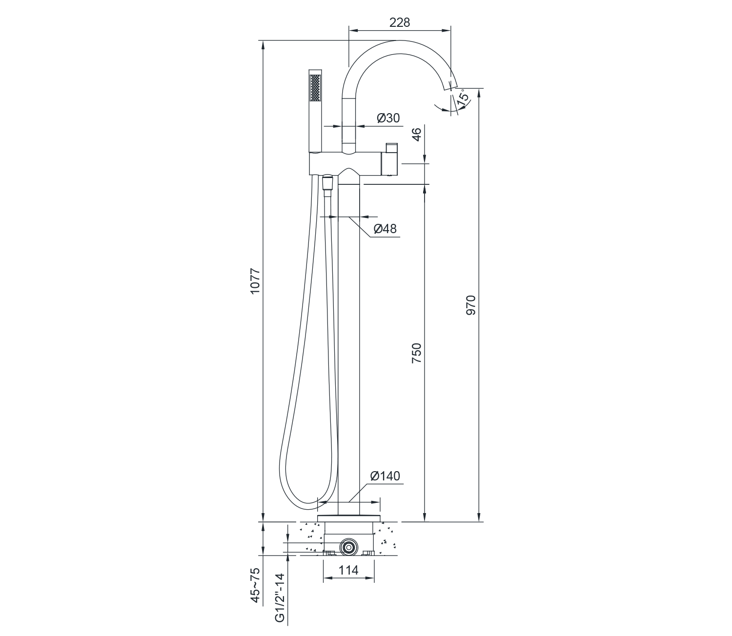 RHAPSODY térben álló kádtöltő csaptelep, zuhanyszettel, alaptesttel, elforgatható kifolyócsővel, króm (R5018)