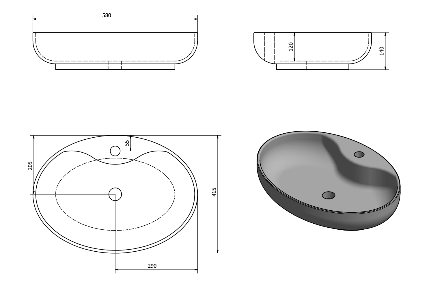 MARIANA pultra szerelhető kerámiamosdó, túlfolyó nélkül, 58x41,5cm (AR483)